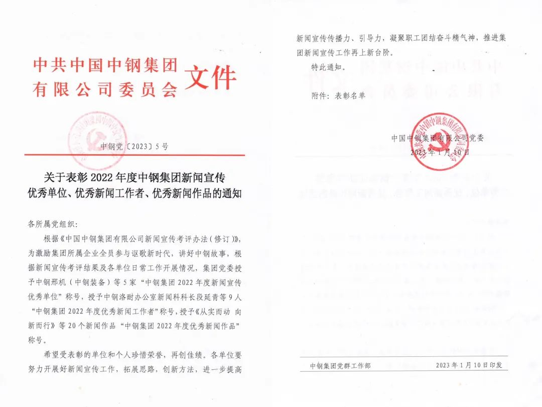 中鋼天源獲評 “中鋼集團2022年度新聞宣傳優-秀單位”
