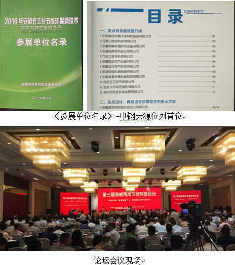 2016年8月12-14日,中鋼天源受邀參加了在馬鞍山市舉辦的安徽省節(jié)能環(huán)保推介會暨第三屆海峽兩岸節(jié)能環(huán)保產(chǎn)業(yè)論壇。