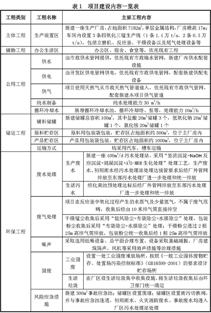項(xiàng)目主要由主體工程、公輔工程和環(huán)保工程組成,具體工程內(nèi)容見(jiàn)表1